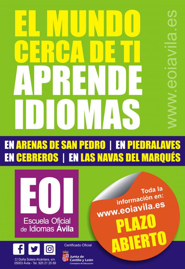 Más información en www.eoiavila.es o en teléfono: 920 21 20 89
