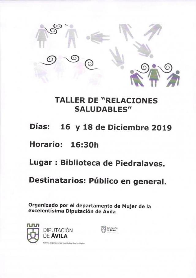 La Diputación de Ávila a través del departamento de la Mujer y en colaboración con el Ayuntamiento de Piedralaves organiza el taller “Relaciones Saludables”.